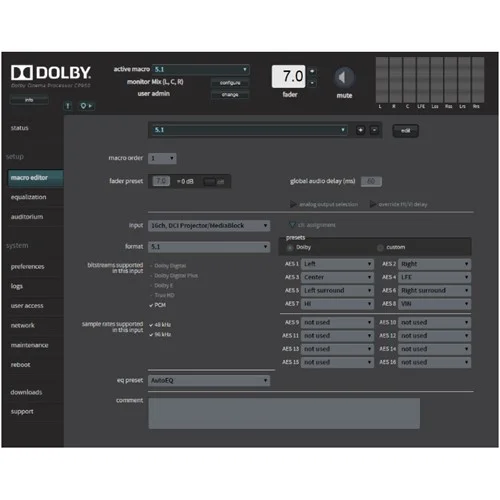 • Dolby Surround 7.1 and 5.1 playback from Cinema Server